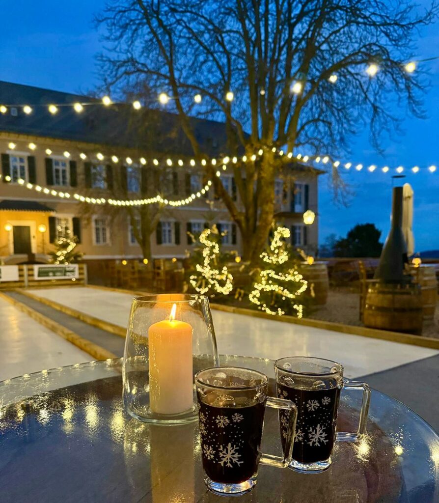 Der Winter steht vor der Tür und unser Weingarten verwandelt sich ab Mitte November zu unserem stimmungsvollen „Glühweinzauber“. Hier gestalten wir einen Bereich, der Gäste dazu einlädt, sich an unseren Weihnachtsmarkt-Hütten kulinarisch verwöhnen zu lassen, gemütliche Stunden in einzigartigem Ambiente zu verbringen oder auf unserer künstlichen Eisstockbahn sportlich aktiv zu werden. Viele Besucherinnen und Besucher nutzen den Winterzauber auch als idealen Rahmen für ihre Weihnachtsfeier oder ein festliches Beisammensein im Kreise Ihrer Kollegen und Liebsten.